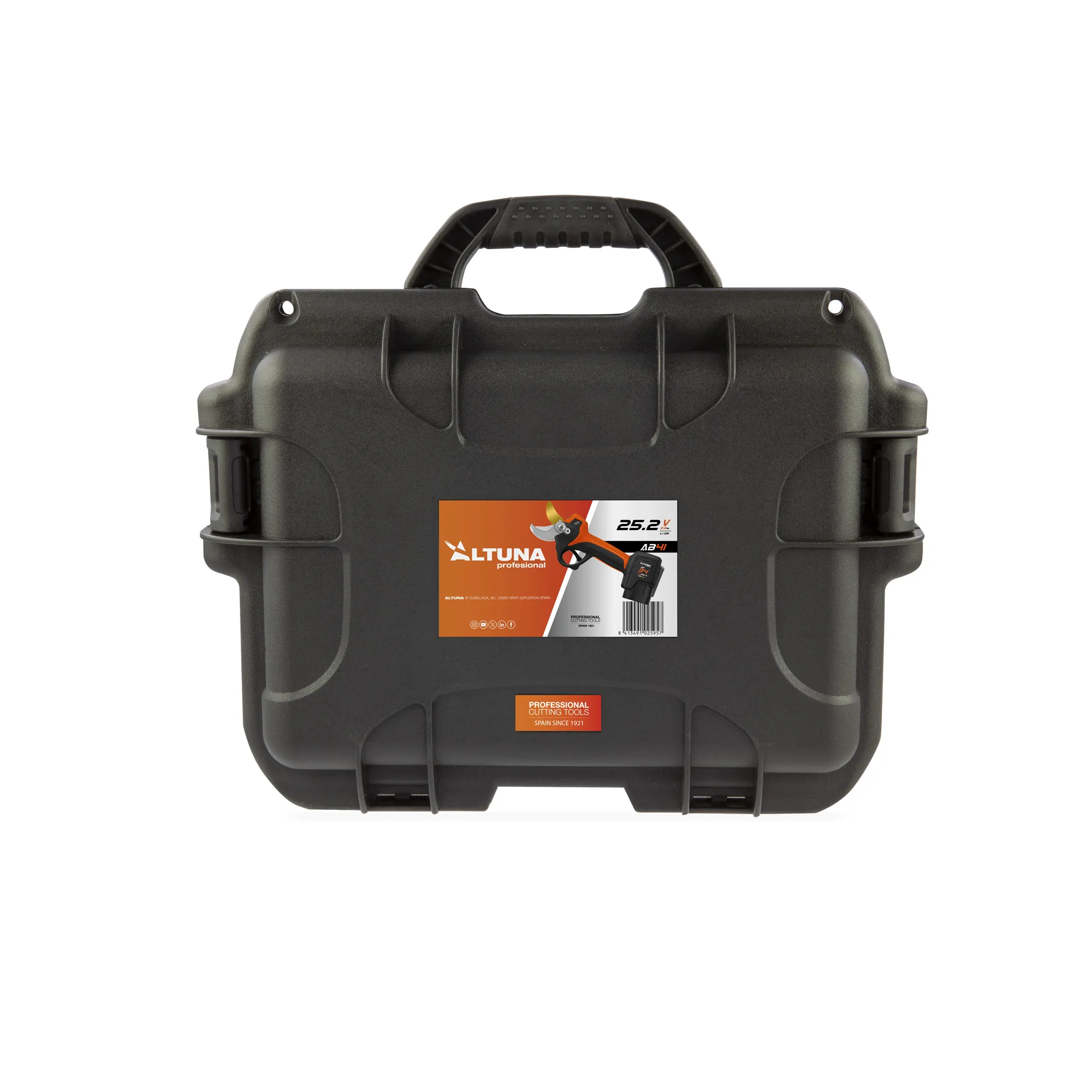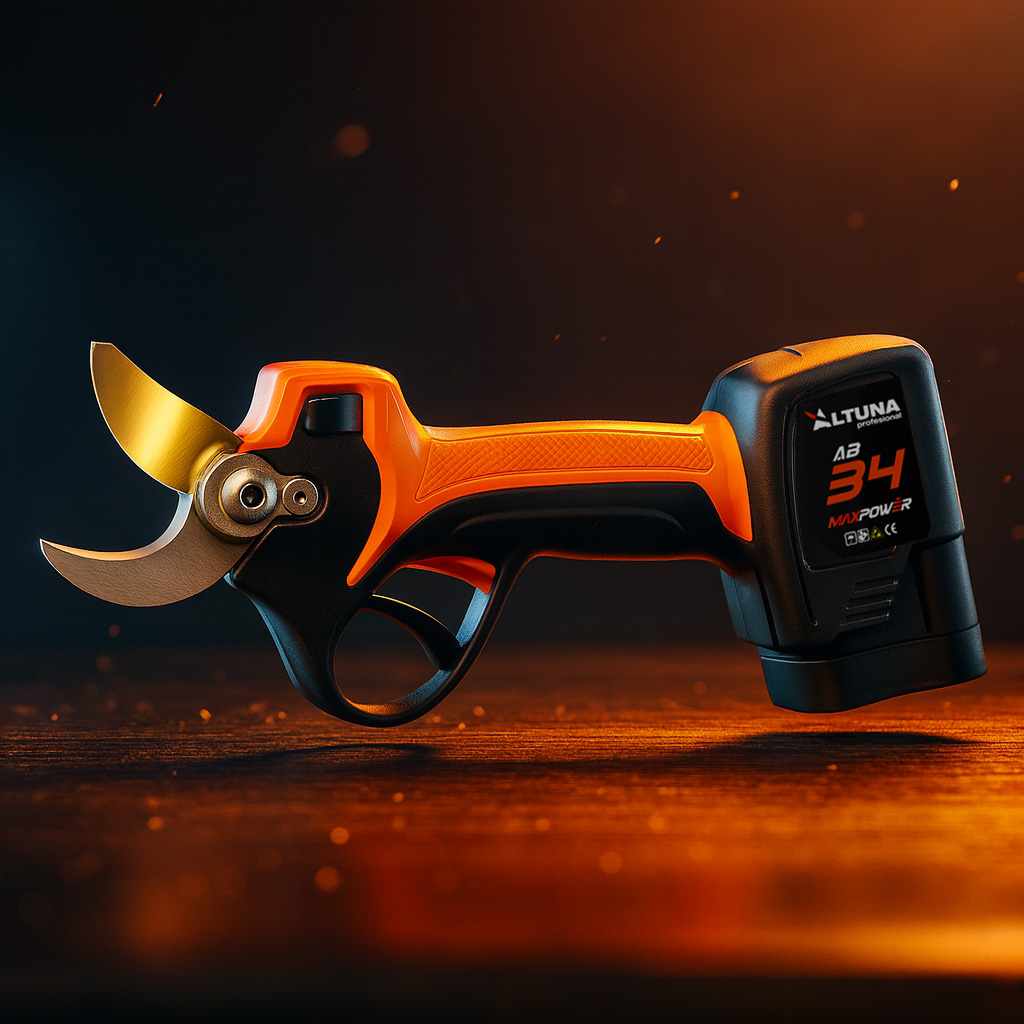 La tijera de poda eléctrica ALTUNA AB34 ha sido desarrollada para ofrecer un equilibrio perfecto entre rendimiento profesional, ligereza y seguridad, siendo ideal para cualquier disciplina de poda: viñedo, frutal, olivar, jardinería o mantenimiento urbano.